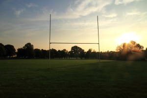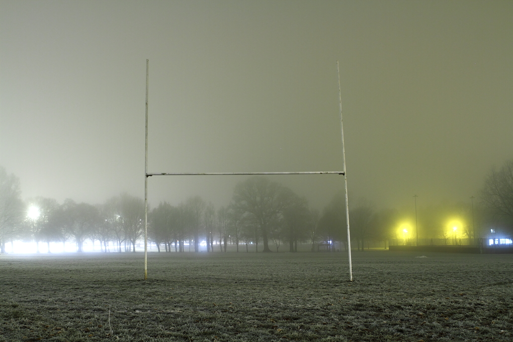 For my landscape course one of the first assignments I got given was to photograph the same place a few times in the day to see the effect of different light on the landscape. This has turned into a long running project with the rugby posts in the field not far from my house. Through the landscape course I’ve started thinking about the histories of places, and the things that happen that we are unaware of or don’t see. So much happens in front of these rugby posts, from the expected rugby matches and people walking their dogs to the occasional (probably) stolen  motorbike ripping the field up and general drunken behaviour. The place has become quite important to me now with the threat of the park and leisure centre being turned into big new school. How long will I be able to take these photos? How long will people be able to use it as a shortcut to the shops?