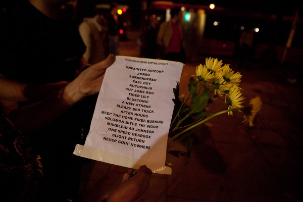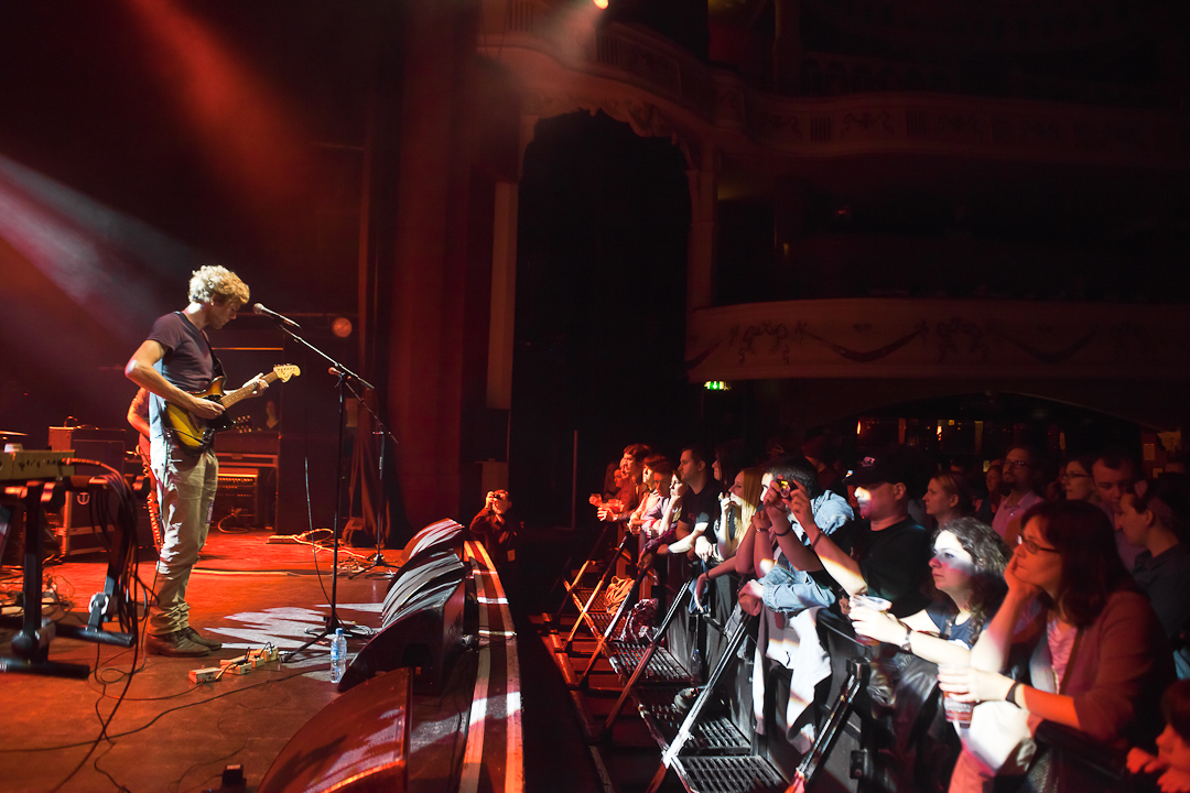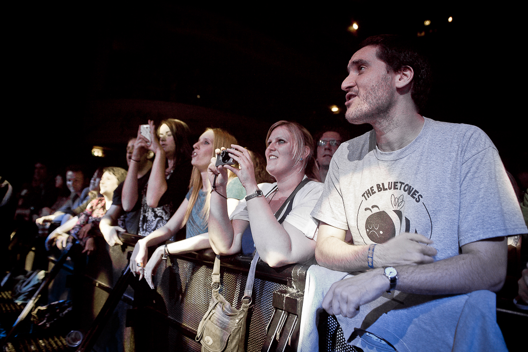 It was over all too quickly and I just didn’t feel like I got the photos I wanted, so I put my bag back with security and walked out of the stage door with one of the other photographers, a friend of Mark’s and a really nice guy. We got back in halfway through the sixth song, Cut Some Rug, due to being accosted by one of the touts for a game of “guess how old I am” outside (he was 49 if I remember correctly). Time to go and find my friends. The place was rammed and there was no way I could get to them, so as I stood at the bottom of the stairs the security guy told me to go round the corridor and speak to the security out the back so I could get back down the front where my friends were. Unfortunately the security guy I spoke to ended up being a total bone, not giving me any chance to speak or explain, so I spent the rest of the gig propping up the merchandise stall. I needed to buy a t-shirt for the trip home anyway. By the time A New Athens started I’d decided to get over it and go to the bar. The atmosphere was pretty electric- it’s been a long time since I’ve been to such a gig. You just don’t get it in Cardiff, though we also don’t have the lovely venues London has. When we do, they don’t seem to last long before someone puts in a complaint or some sort of big spanner gets thrown in the works. Such a shame.