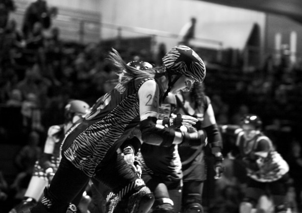 Anyway, enough about me. The roller derby is really exciting and the Brawlers seem to be really good from what little I know. Following a narrow defeat (I think- I can’t actually remember for sure!) for the B side against Swansea City Slayers, the A side took on the Cardiff Roller Collective (CRoC) and dealt with them accordingly. Properly showed them who’s boss. TIGER BAY BRAWLERS RULE!!
