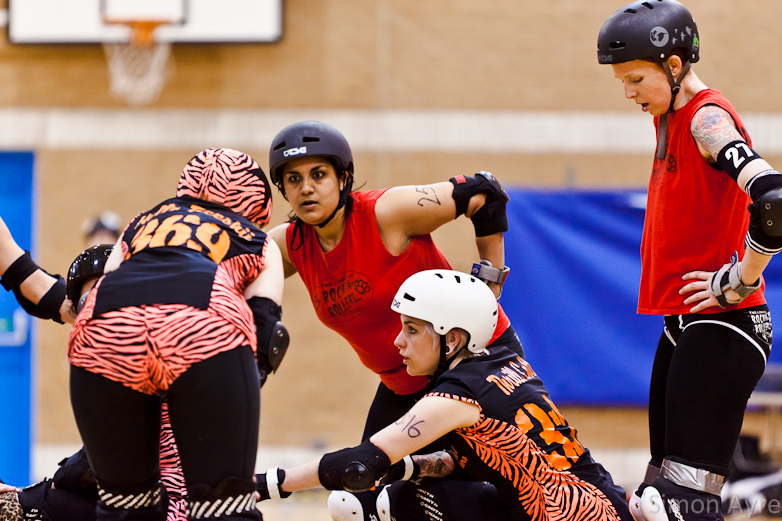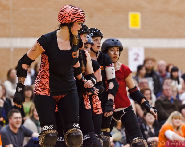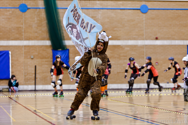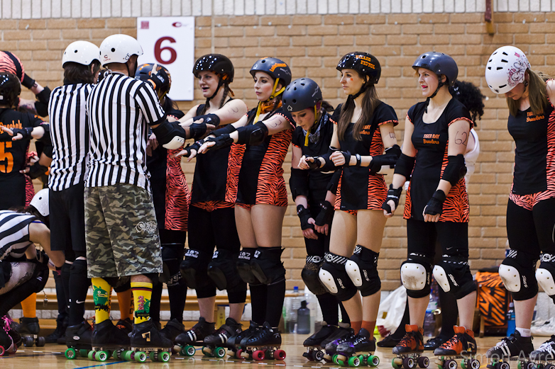 It’s hard for me to believe but it’s been roughly 5 months since I last photographed a roller derby bout, so I’d been looking forward to last night for ages. It’s so easy to become absolutely obsessed with and when home bouts are quite rare I look at photos of other leagues/ bouts being added on facebook and get quite jealous that I’m missing out on the roller derby action. I’ve thought about contacting other leagues to take photos but when it came down to it, I couldn’t. Tiger Bay Brawlers is where it’s at for me. If I photographed anyone else I’d feel like I was cheating on them.