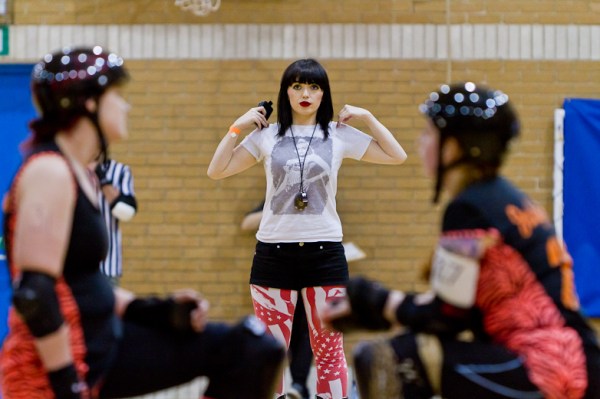 Anyway, yesterday was finally bout day. Tiger Bay Brawlers vs London Rockin’ Rollers at Tal-y-Bont. We arrived just in time, after going to the pub down the road for some food and drinks and a catch up beforehand. I got off to a bit of a shaky start with my photos, but soon pulled myself together. Roller Derby is such a fast sport to photograph that it requires a slightly different technique to most of the stuff I do, and I always use two bodies with different lenses, both of which have slightly different methods of control. There were at least another four photographers yesterday too, so I really had to be on the ball. I don’t know about the other photographers, but I want to be the best in whatever situation I’m in. I can’t imagine why you wouldn’t want to be, so I’m sure they’ll feel the same.