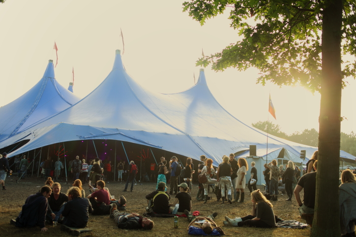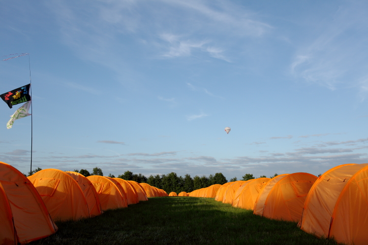 There are all sorts of things going on all over the site, whether that be the themed camp sites or inside the main arena. There are demonstrations and attractions everywhere you look, none more stranger this year than the big house tent thing that was being suspended high up in the air by a crane. We couldn’t really see what it was all about, but hey, whatever. Obviously I had to take a photo of it.