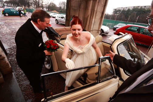 The day arrived and I went to the Park Plaza hotel to meet Sian and take photos of her and the birdesmaids, and generally try to stay out of the way, which is sort of hard when you’re my size, but I think I managed it, just. The bridesmaids looked great in their teal dresses and Sian looked fantastic in her ivory dress. So after a few photos I headed over to City Hall ahead of them and they arrived in the lovebug!